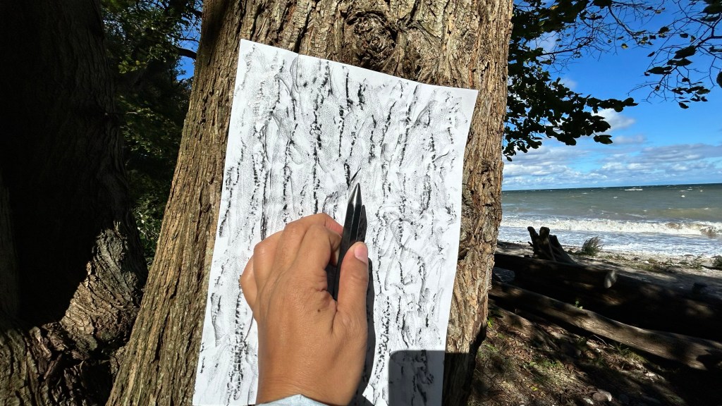 A core focus of my residency was developing the concept of “forest dwelling,” drawing from my previous forest campaign work in the Philippines. I spent long hours within the forest, creating performative poetic rituals that included tracing tree barks as a form of attunement—centering the self with the living presence of the trees. This practice culminated in a durational performance piece titled Memory of Care by Trees, an exploration of embodied care and ecological memory.