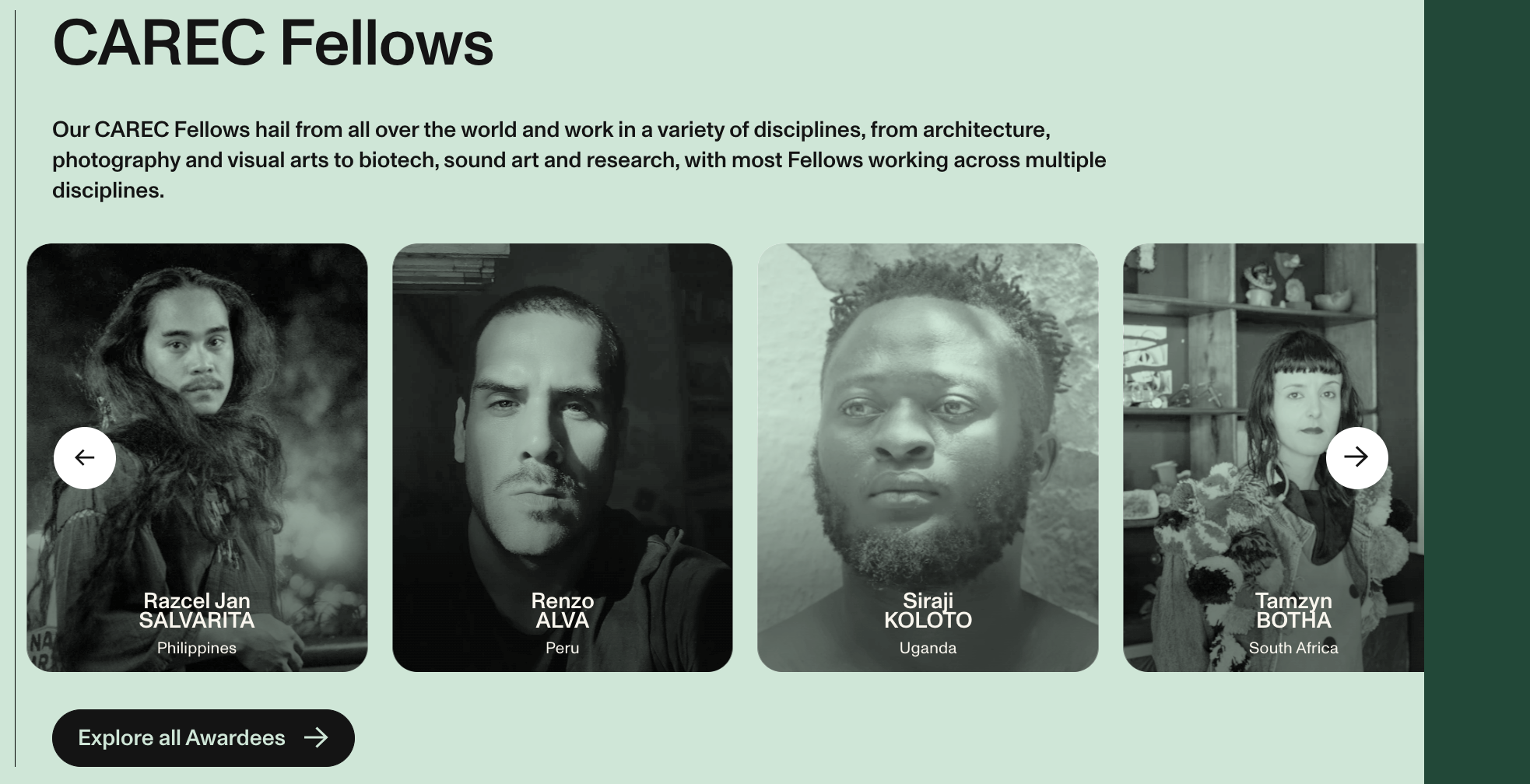 Cultural & Artistic Responses to the Environmental Crisis (CAREC) brings together up to 12 mid-career artists and cultural practitioners from around the world in a year-long interdisciplinary programme with a focus on climate justice and the connection between the climate crisis and the social, racial, and environmental issues in which it is entangled.