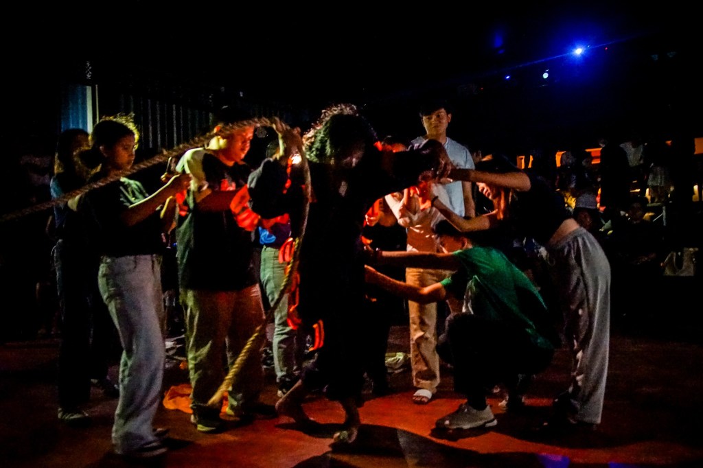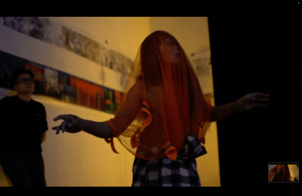 Central to the exhibition is a durational performance in which the artists engage in a cyclone-like choreography—dancing and swirling with the force of a typhoon—captured through the lens of a thermal camera. In this act, the body becomes a heat map of visibility, presence, and transformation. The thermal imagery reveals the invisible: memory as energy, grief as warmth, movement as release. This visual language makes tangible the inner turbulence held by the body in response to climate trauma.